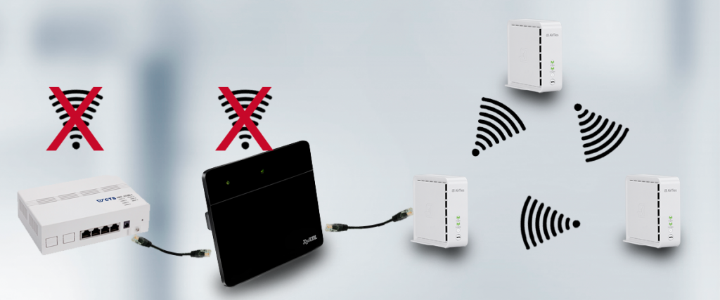 Wireless radios in all devices other than the AirTies access points should be switched off. Log on to your router’s settings and turn off both 2.4 GHz and 5 GHz wireless radios, so that your new wireless network is not disturbed.